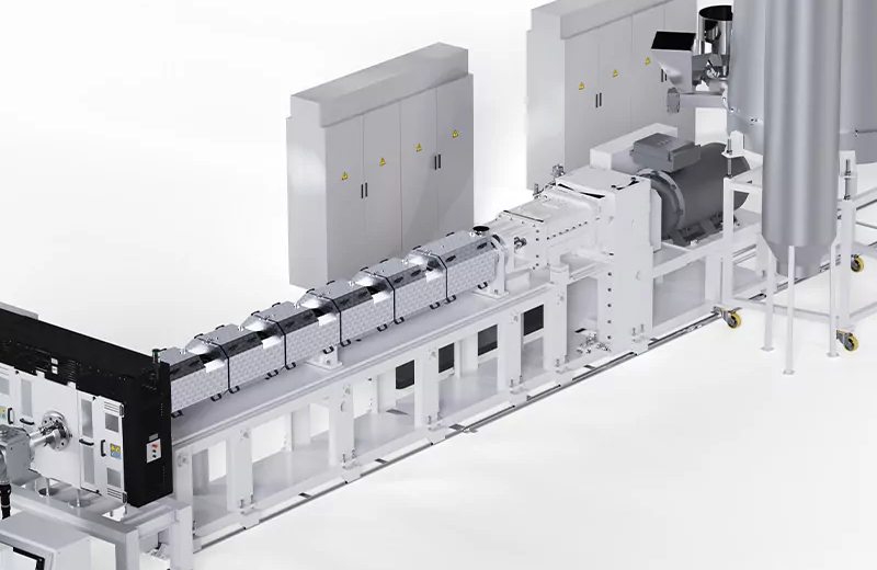 Le système co-rotatif Bandera est capable de retraiter jusqu'à 100 % des déchets et de les transformer en un produit à haute valeur ajoutée, semblable à la matière première. Ce système est particulièrement recommandé pour la valorisation de films techniques (réticulés) ou de films multimatériaux barrières (PE/PA/EVOH).